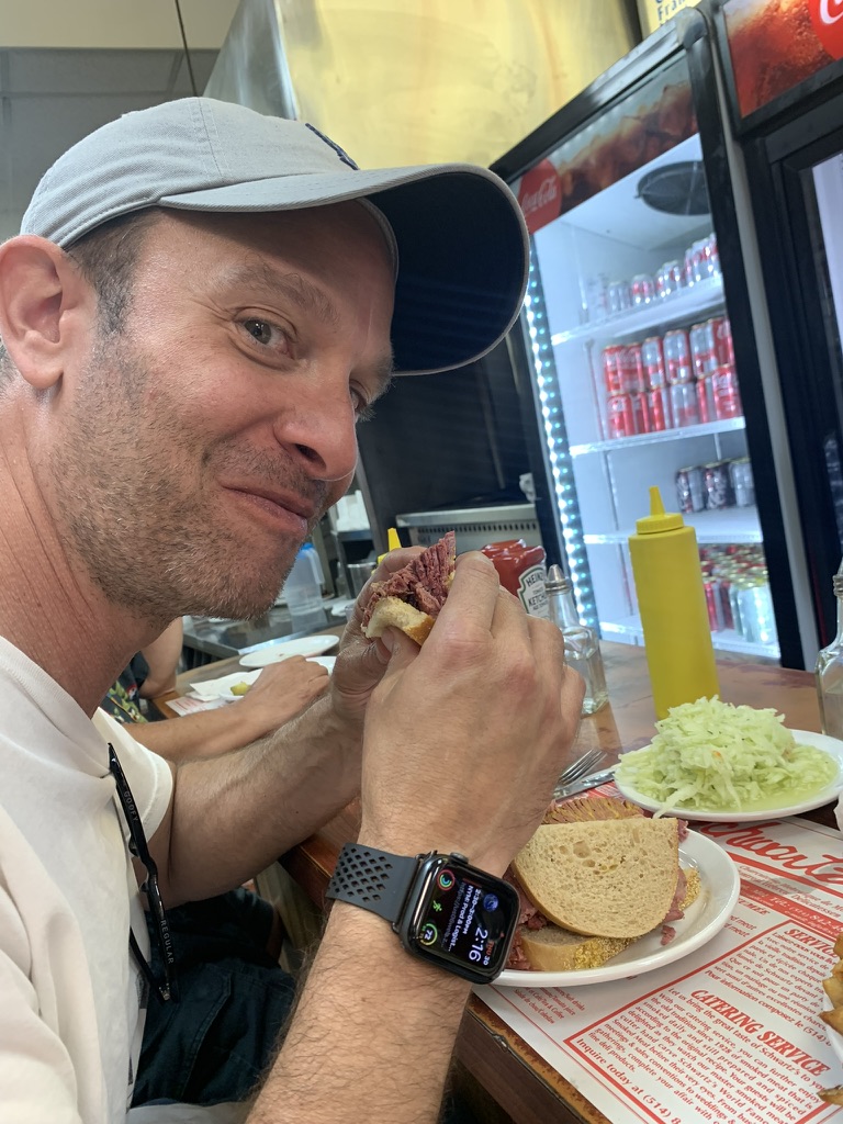 As a corollary of Truism 5, and 6 to a degree, if most experiences are going to be gentrified and whelming, then what are you left with?  You’re left with eating, that’s what.  Good eating we did.  Highlights included Lee in Toronto, an Asian fusion restaurant that offered a 19 ingredient Singaporean slaw and a kick ass sangria cart; Flame & Smith, a super cool family owned restaurant in Bloomfield, on our way to Prince Edward; the Big Apple, a rest stop kitschy bacchanal, selling every apple treat you can imagine (we went with the fritters, but you’ve got your crumble, pie, turnover, jerky, cider, etc etc; and Schwartz’s in Montreal, home to the smoked “Don’t Call It Brisket” meat sandwich.  God bless those Jews who made it over in 1928 to open this slice of carnivore heaven.